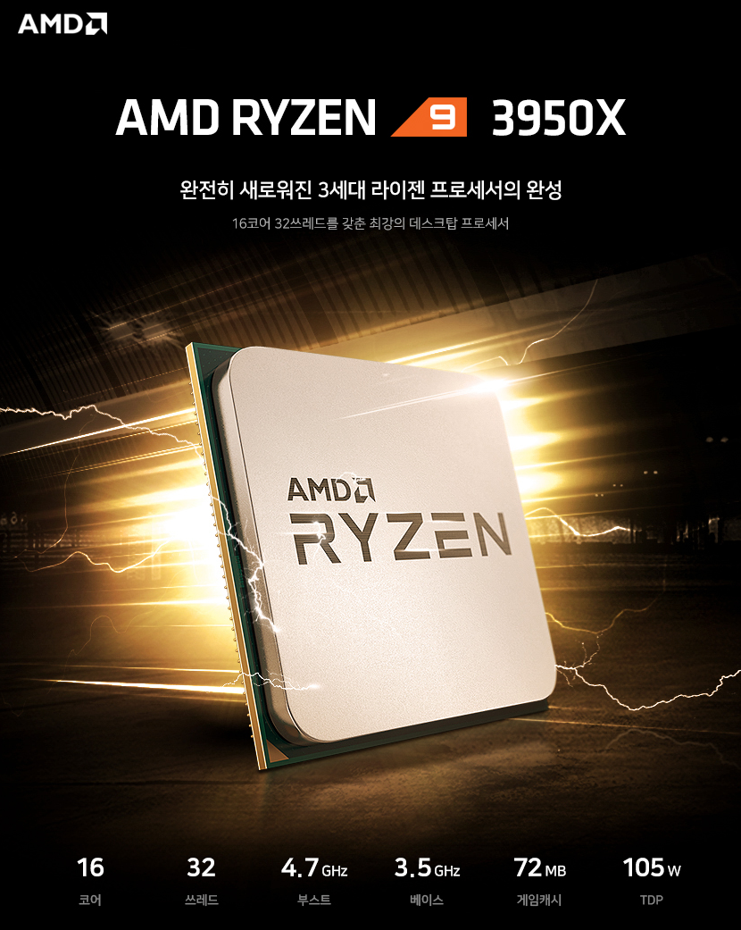 드디어 라이젠9 3950X가 11월 25일 정식 출시됐다.라이젠 3세대가 출시되었을 때, 9월 중으로 3950x를 판매한다고 했으나 무려 3개월 가까이 연기되었다.