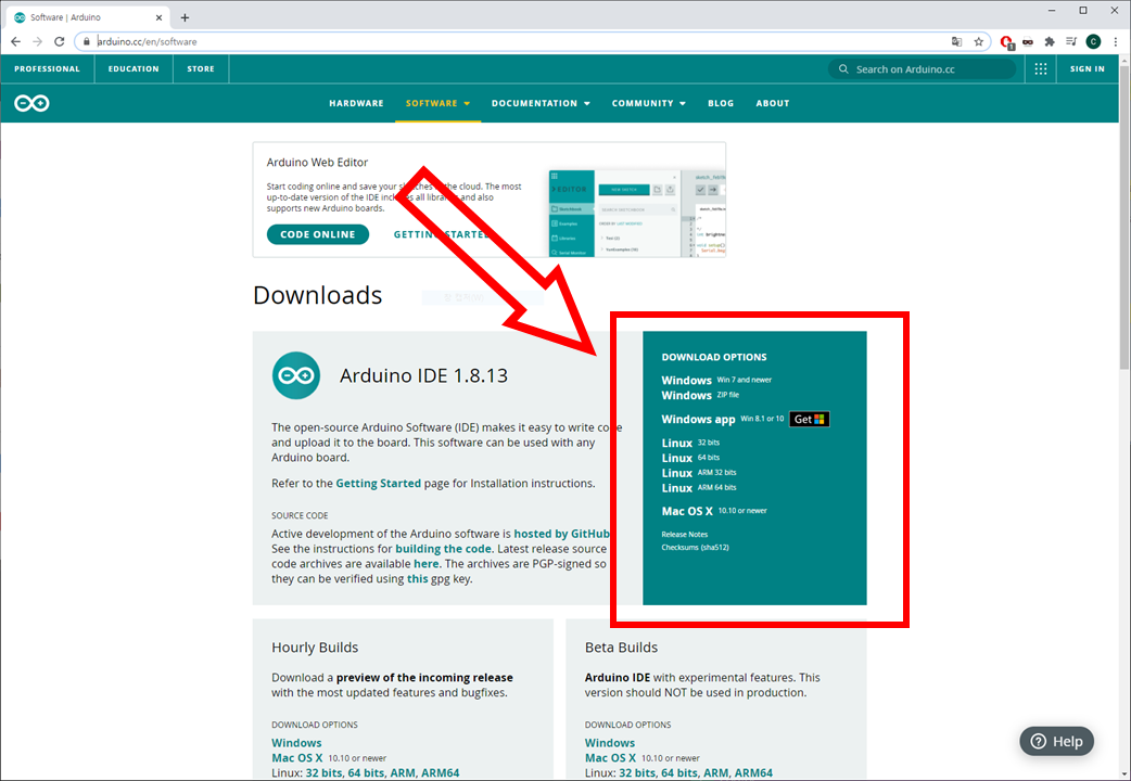 아두이노 IDE 설치 다운로드 사이트 : www.arduino.cc/en/software
