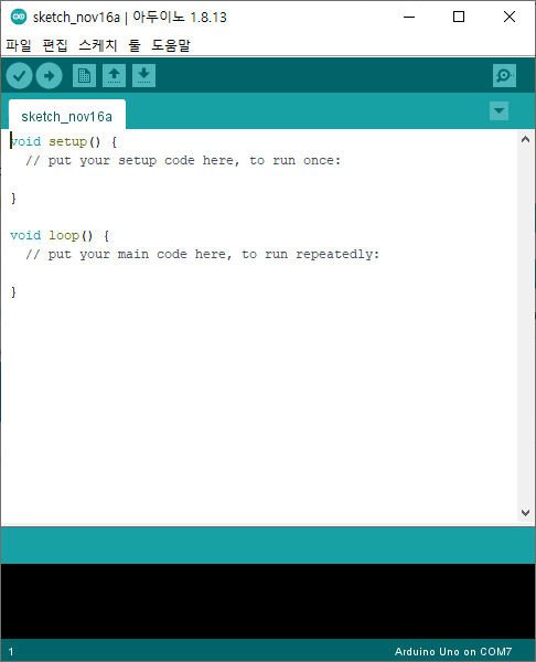 아두이노 IDE를 처음 열게되면, 아래와 같이 코드를 입력하는 편집기가 나온다.