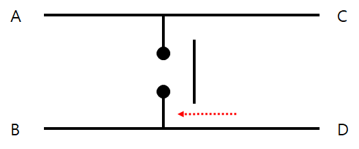 위와 같이 버튼을 눌렀을 때는 A와 B 사이에 끊어진 도선이 연결되면서 전기가 흐르는 형식이다. 이렇게 직접적으로 전류를 제어하는 버튼들이 있는 반면 반대로 처음에는 연결되어 있다가 눌렀을 때 떨어지는 반대 버튼도 있고, 전류의 흐름을 직접 제어하지 않고 간접적으로 제어하는 버튼들도 있다.