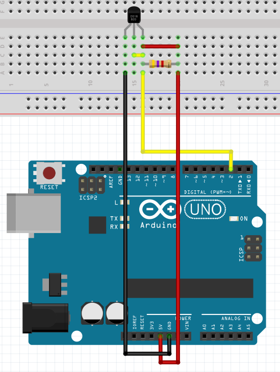 디지털 센서이므로 데이터 라인은 디지털 핀 2번에 연결해준다.