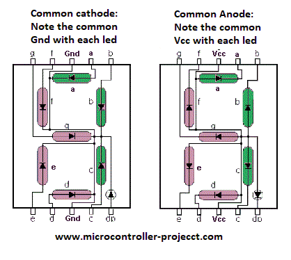 애노드와 캐소드는 쉽게 말해서 +와 -라고 생각하면 된다. 주로 LED와 같이 전압을 인가해야 하는 장치에서 주로 표현한다. 각 장치에서 공용으로 사용되는 + 극을 Common Anode, 반대로 공용으로 사용하는 -극을 Common Cathode라고 표현한다.