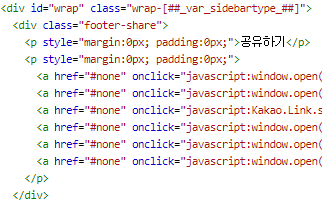 HTML 탭으로 이동하여 코드를 아래의 이미지처럼 <div id="wrap" .... > 하단에 끼워 넣자.