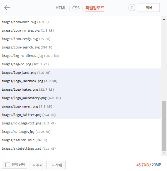 티스토리 기준으로 html 편집에 들어왔다면 좌측칸의 파일 업로드 탭으로 이동해서 이미지를 업로드 해주면 된다.
