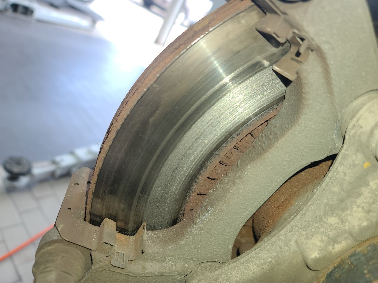 공명음이 들렸을 때 갔으면 해결 되었을지도 모르는 일이었지만, 계속해서 브레이크 잔량 체크를 할 때마다 충분히 남아있어 계속 주행을 했었다. 그러다 결국 쇠 갈리는 소리가 났다.
