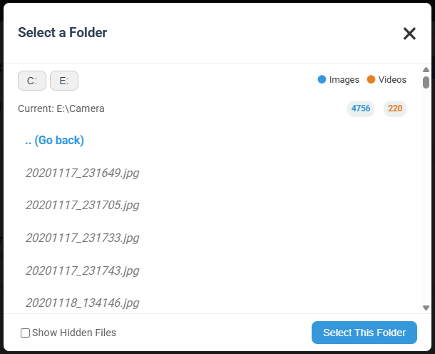 * 사진/동영상 있는 위치 이동 후 Select This Folder 클릭